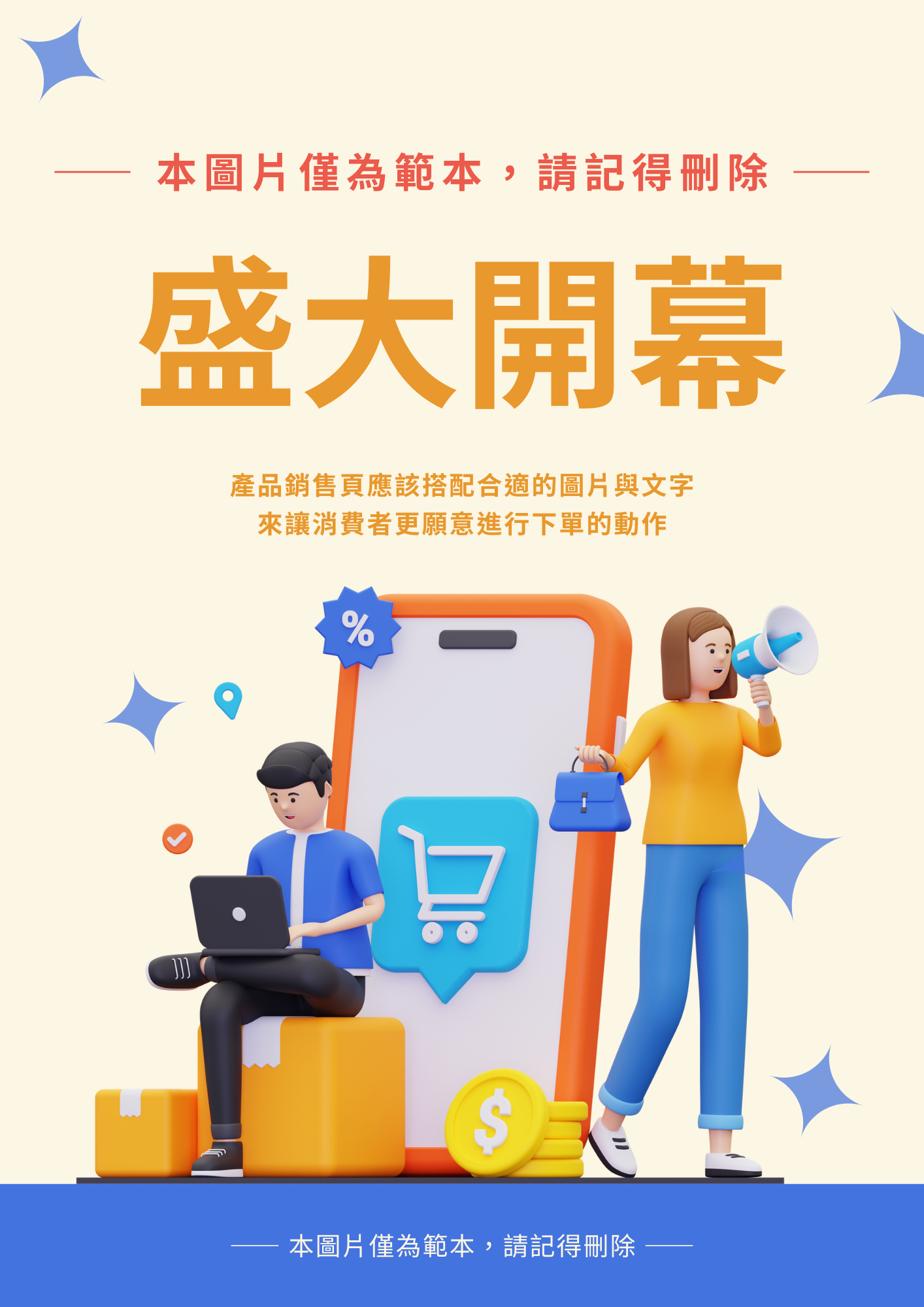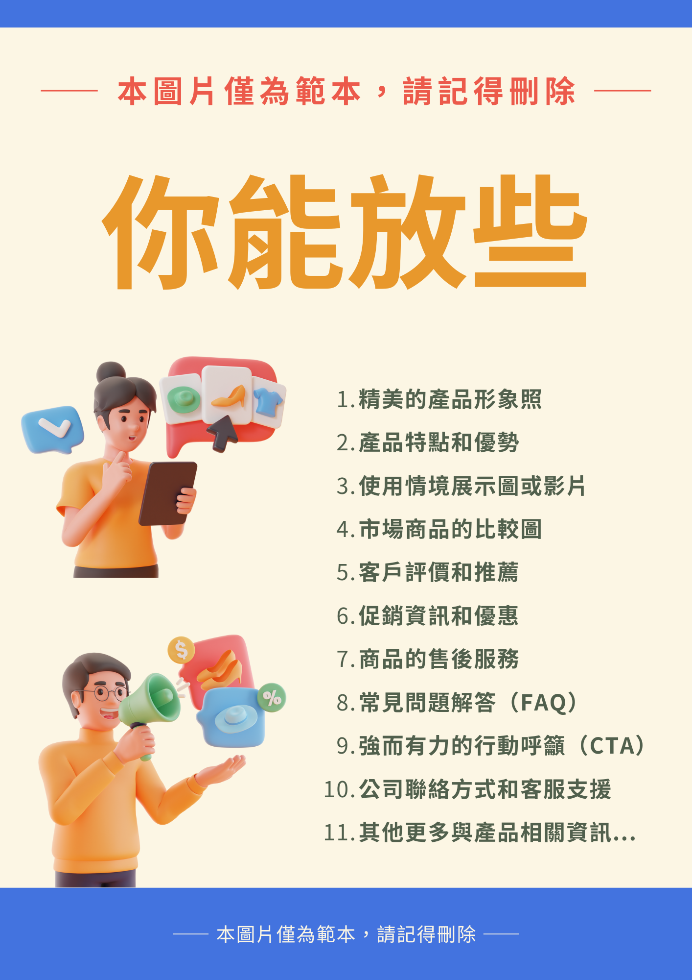 這是一款展示用的範例商品,為展示電子商城內容而設計,展示如何進行清晰簡單的商品描述,並且以條列形式說明其主要優點。